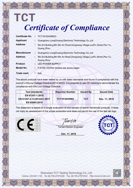 廣州龍創(chuàng)電子科技有限公司 成立于2009年專業(yè)從事LED AC-DC開關(guān)電源及驅(qū)動電源的開發(fā)、生產(chǎn)及銷售。公司座落于廣州番禺,交通便捷。廠區(qū)面積4000平方米;年產(chǎn)能100多萬臺。產(chǎn)品已獲得CCC 、CE&RoHS等證書,遍布國內(nèi)外市場,遠(yuǎn)銷全球,如歐美、南美、中東、東南亞及港臺等60個國家和地區(qū),在行業(yè)內(nèi)享有一定的知名度。